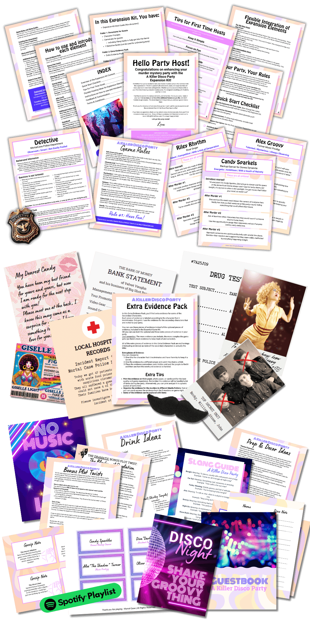 The Expansion Kit gives you extra clues, gameplay options, and tools to customize the game and keep things dramatic – making it even easier (and more fun) to host a party everyone will remember.