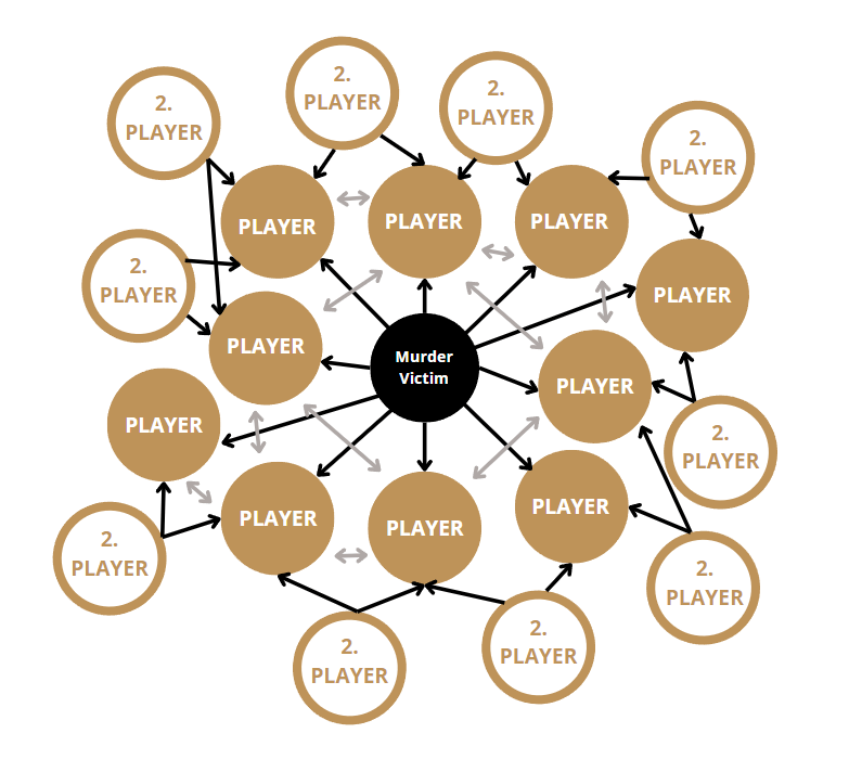 It all starts with the first murder and then I build from there. Most of my Mystery Murder games has 1-4 murders and one killer. I then plan out the primary characters and then the secondary charaters in the game.