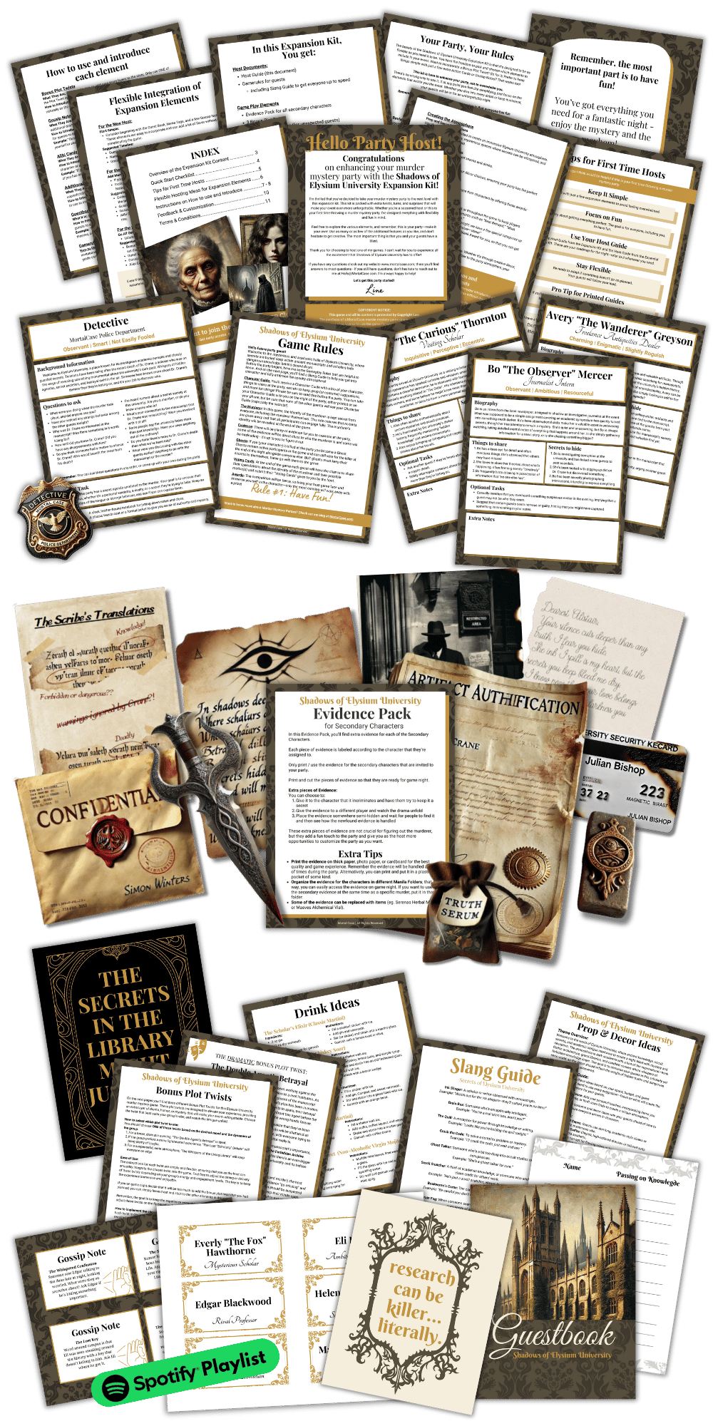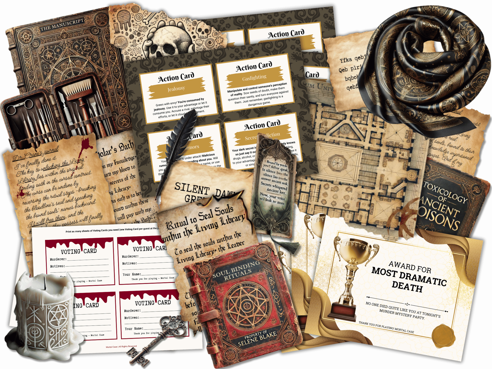 This game is perfect for a thrilling night in with friends, an immersive party, or any gathering where you want to add a touch of gothic academia and high-stakes intrigue!